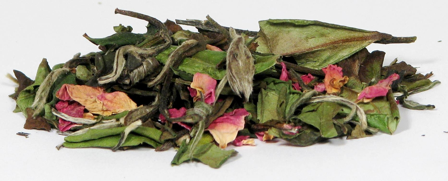 Składniki: herbata biała Pai Mu Tan, płatki róży, aromat