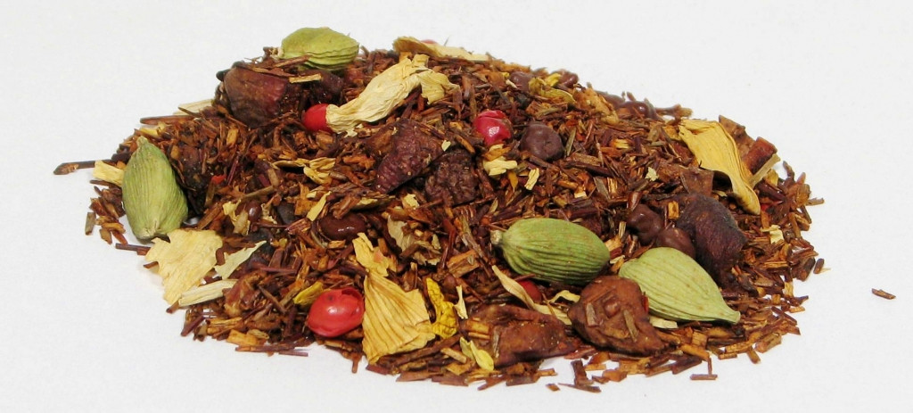 Składniki: Rooibos (Aspalat prosty), kawałki jabłka, różowy pieprz, kardamon, kwiat słonecznika, aromat