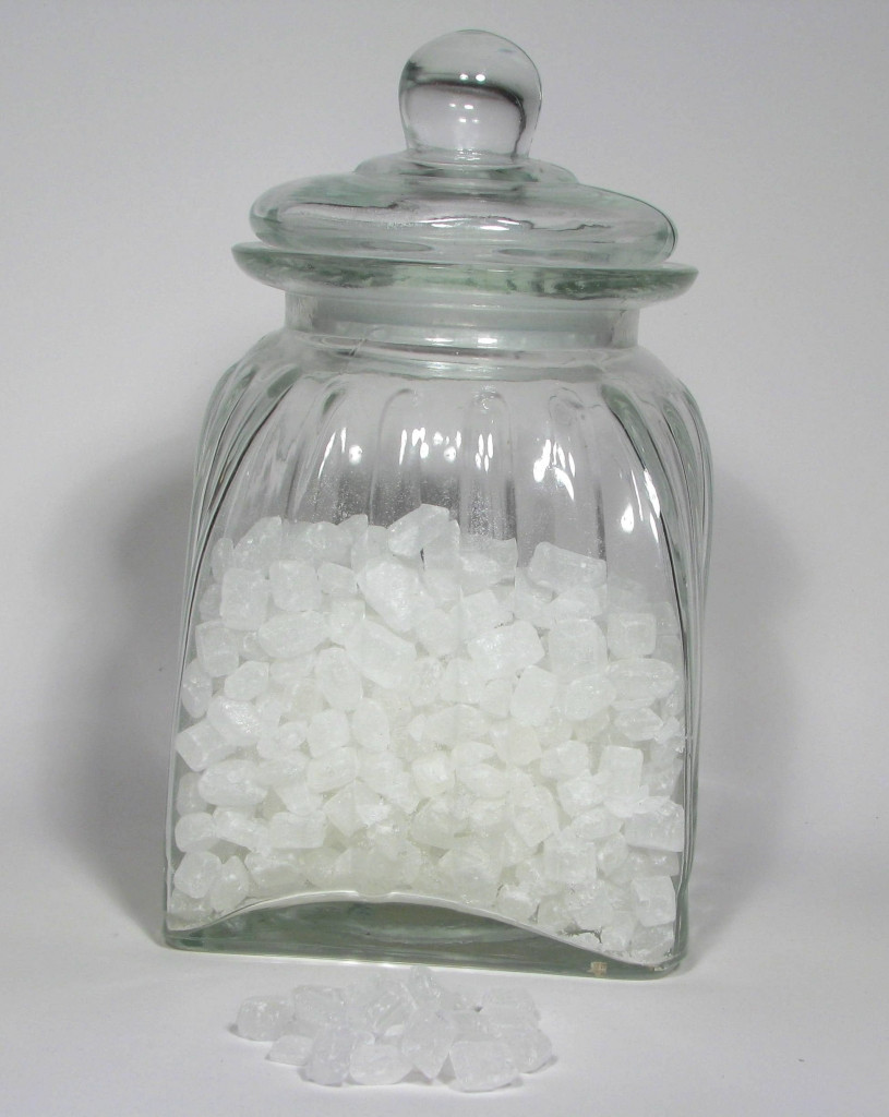 Ozdobny cukier w postaci dużych kryształów. Kostka wielkość 2-2,5cm.