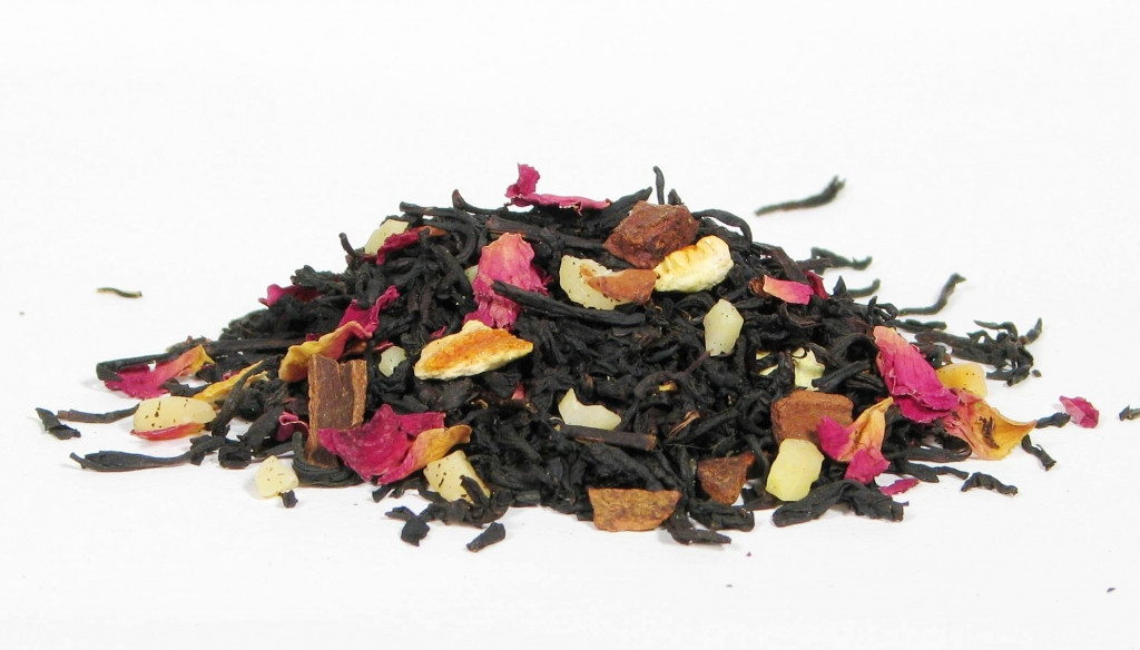 Składniki: herbata czarna, orzech arachidowy, cynamon, skórka pomarańczy, płatki róży, aromat