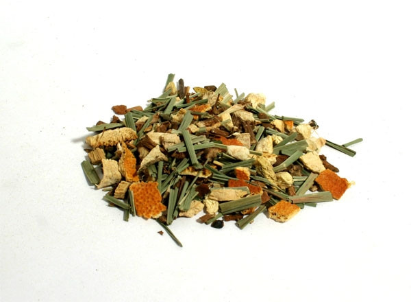 Dla Pań - Herbata ziołowa Składniki: skórka pomarańczy, trawa cytrynowa, imbir, lukrecja, korzeń mniszka lekarskiego, cynamon, koper włoski, mięta pieprzowa, yerba mate, korzeń arcydzięgla, goździki, jagody jałowca, pieprz, kardamon, aromatBardzo skuteczna mieszanka wspomagająca trawienie, wiele jej składników działa przeciwdepresyjnie, przeciwlękowo, uspakajająco i relaksująco; mają też działanie oczyszczające i bakteriobójcze, wzmacniają naczynia krwionośne, podnoszą odporność organizmu i sprawność seksualną.