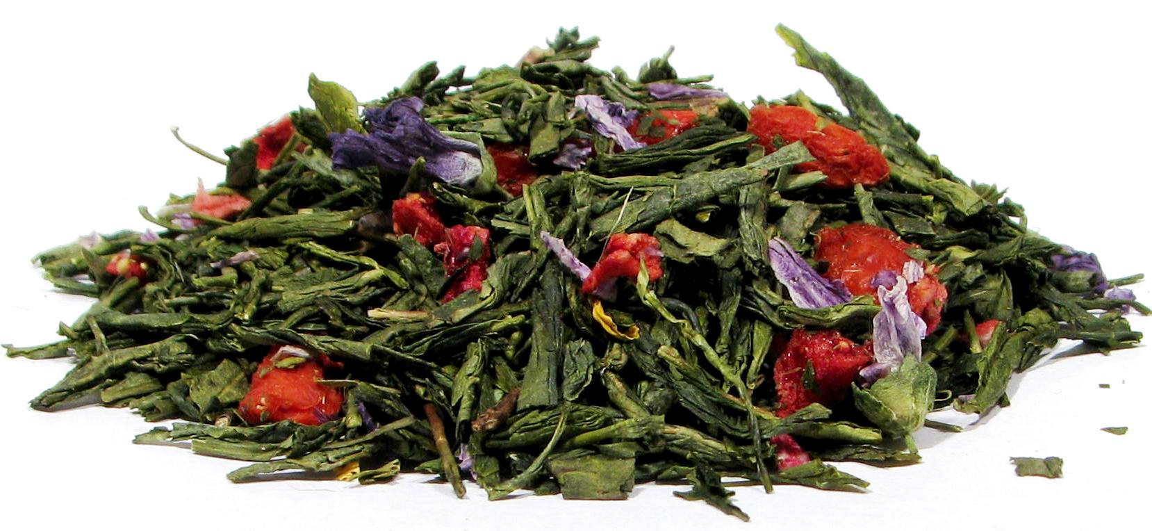 Składniki: herbata zielona Sencha, owoce goji, truskawki liofilizowane, kwiat malwy, aromat