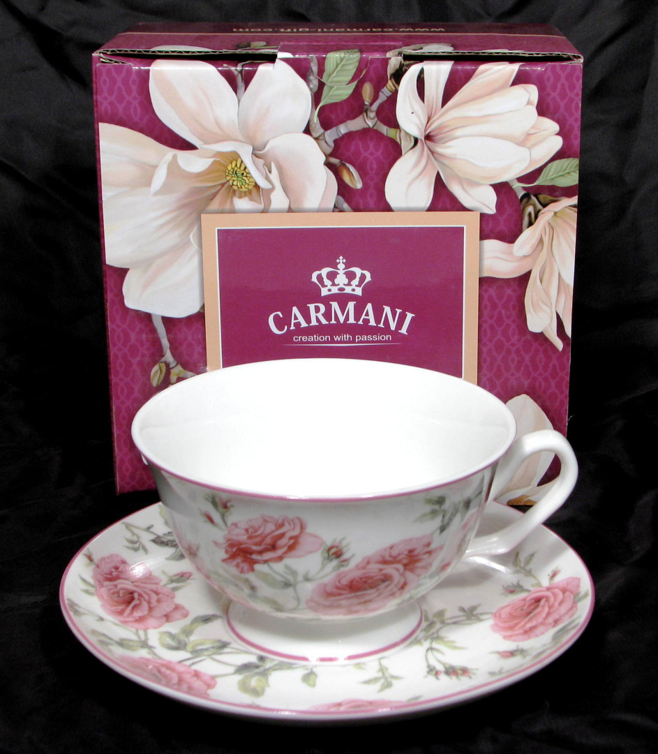 Przepiękna porcelanowa filiżanka z podstawką, w sztywnym, lakierowanym pudełku prezentowym.