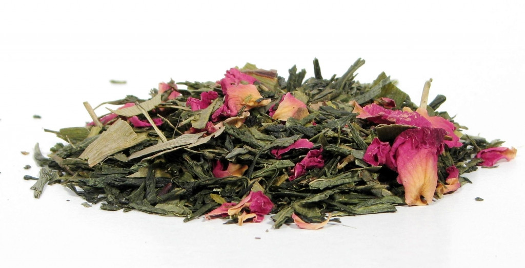 Składniki: herbata zielona Sencha, cięte liście miłorzębu dwuklapowego (Ginkgo Biloba L. ), płatki róży, aromat