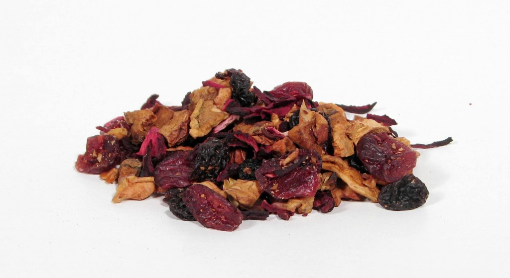 Składniki: jabłko (jabłko, dwutlenek siarki), rodzynki, ananas, wiśnia liofilizowana, hibiskus, aromat rumowy
