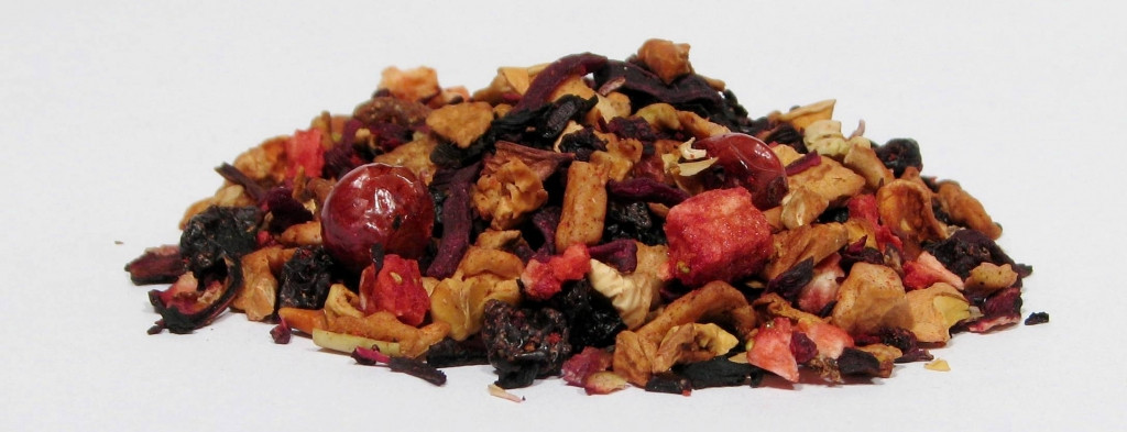 Składniki: rodzynki, hibiskus, owoc czarnego bzu, czarna porzeczka, burak ćwikłowy, wiśnie, truskawki, kawałki jabłka, aromat rumowy (niezbyt kwaśna)