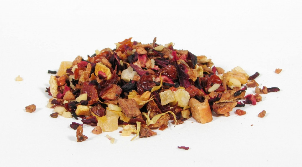 Składniki: jabłko, hibiskus, owoc dzikiej róży, skórka pomarańczy, orzech arachidowy, kwiat pomarańczy, aromat czekoladowo-pomarańczowy