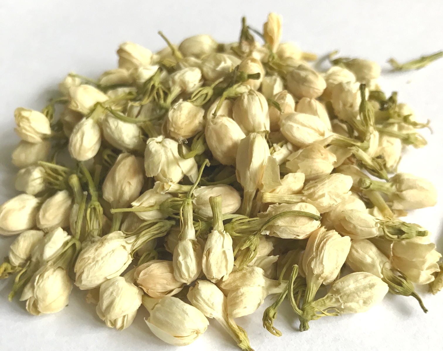 Suszony jaśmin pąki charakteryzuje się niezwykle intensywnym aromatem i niepowtarzalnym smakiem. Doskonale się sprawdza do przygotowywania aromatycznych naparów. Dodany do herbaty nie tylko wzbogaci jej smak i zapach, ale będzie też wyjątkową dekoracją. Pąki jaśminowe można też z powodzeniem dodawać do rozmaitych potraw, a także ciast i deserów.