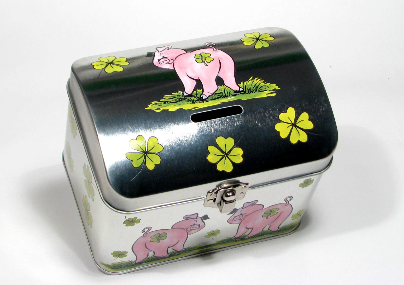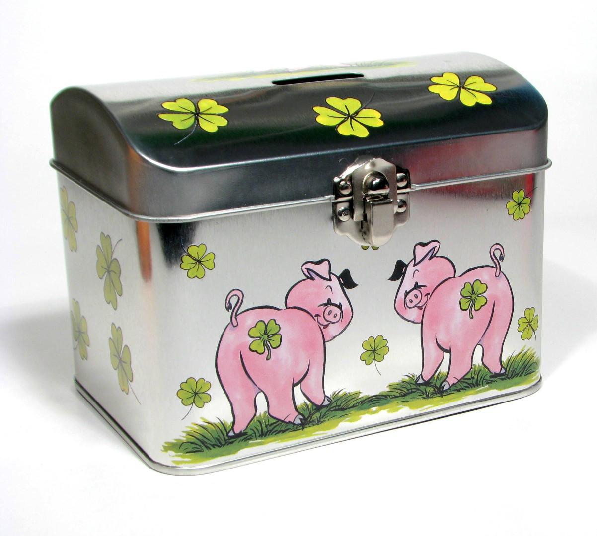 Duża puszka - skarbonka; wymiary: 142*101*89mm