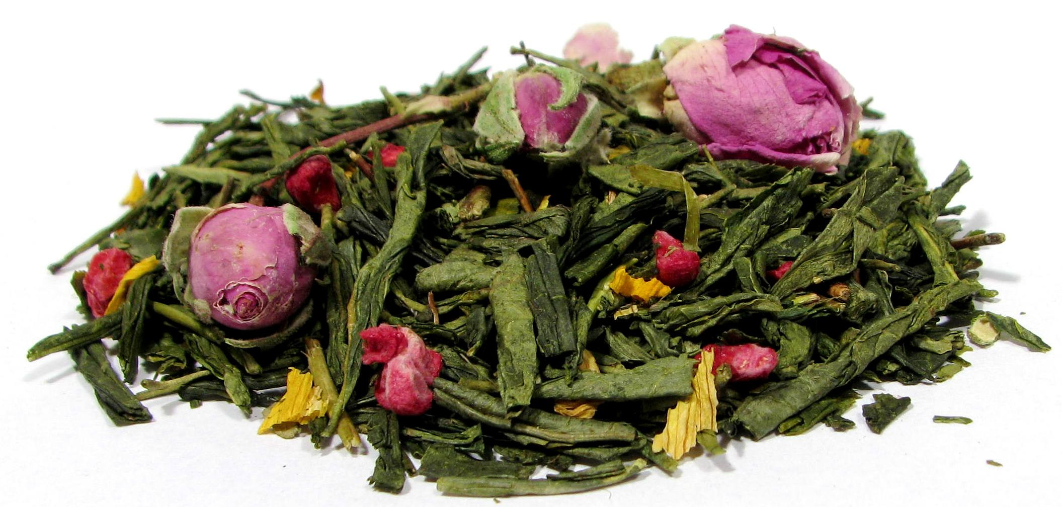 Składniki: herbata zielona Sencha, pączki róży, kwiat słonecznika, malina liofilizowana, aromat